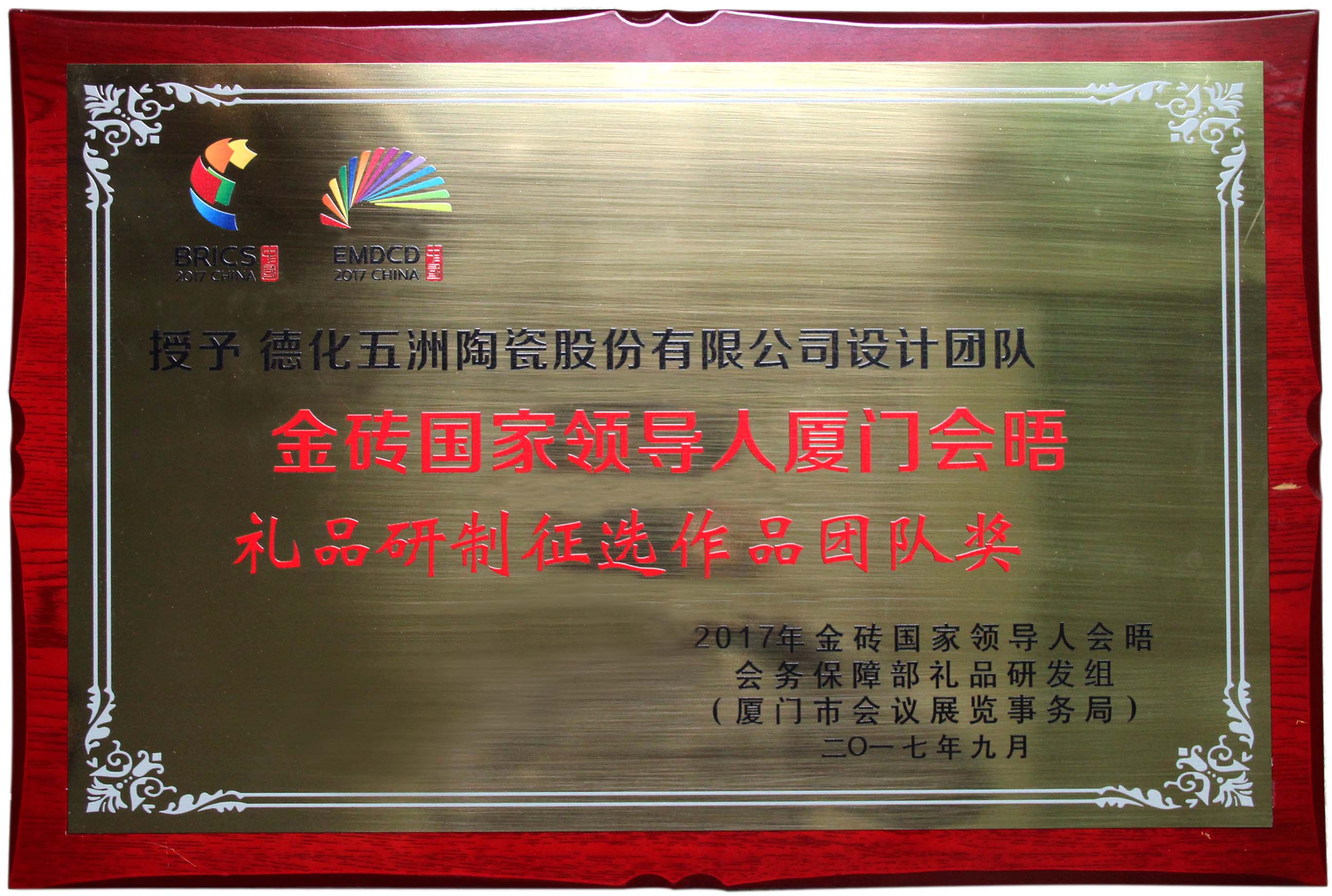 2017年9月 金磚國家領(lǐng)導人廈門會晤 禮品研制征選作品團隊獎